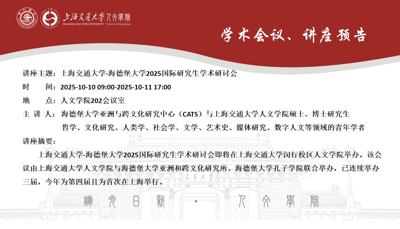 【2025-10-10-11】上海交通大学-海德堡大学2025国际研究生学术研讨会