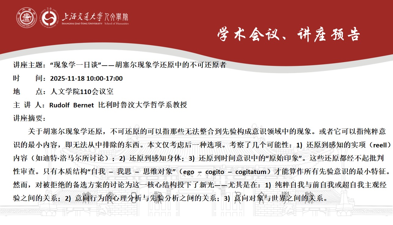 【2025-11-18】Rudolf Bernet等:“现象学一日谈”——胡塞尔现象学还原中的不可还原者