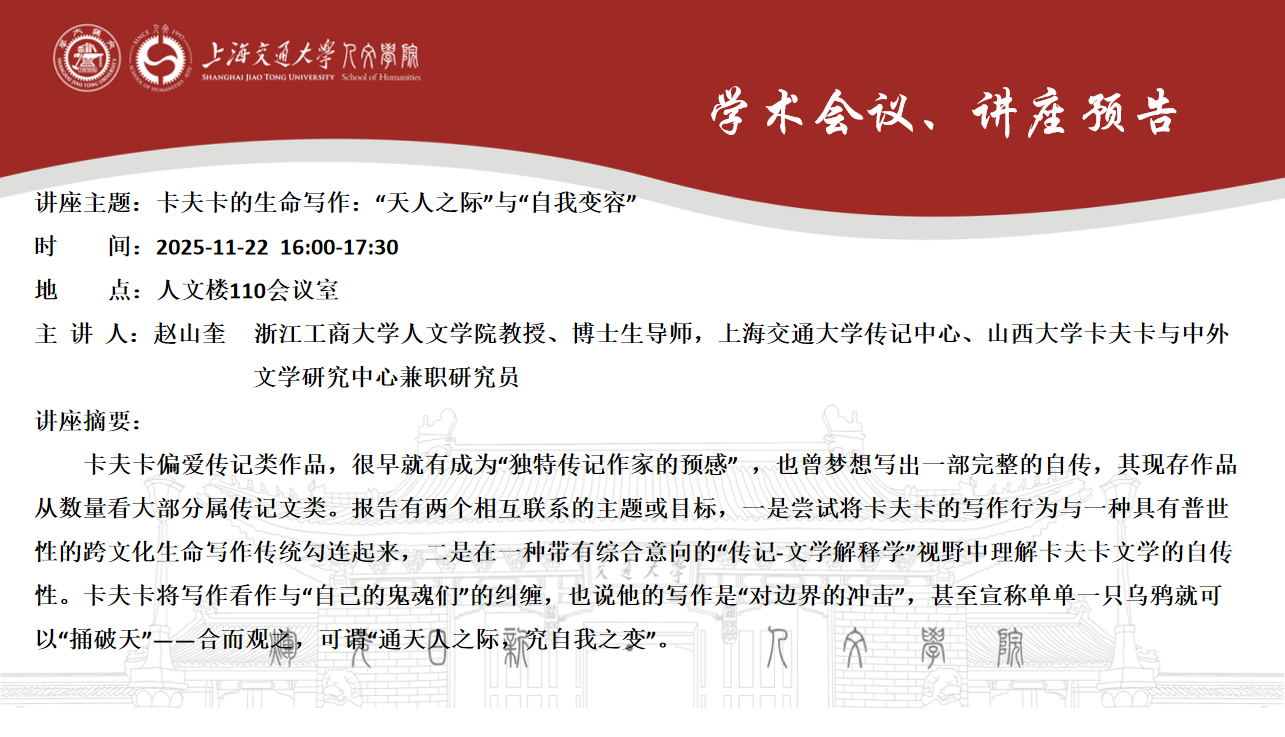 【2025-11-22】赵山奎:卡夫卡的生命写作:“天人之际”与“自我变容”
